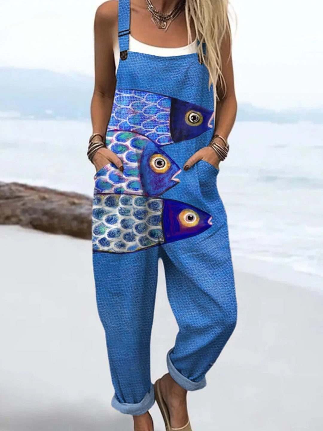 Women's Jumpsuit - Vintage Floral Design, Comfort and Wide Leg Style